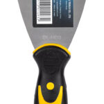 Ανοξείδωτη σπάτουλα με εργονομική, αντιολισθητική λαβή, ιδανική για χρήση σε οικοδομικές εργασίες.