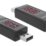 Αντάπτορας USB αρσενικό σε θηλυκό από την Delock με οθόνη LED για την ένδειξη της τρέχουσας τιμής αμπέρ και βολτ της συνδεδεμένης συσκευής.