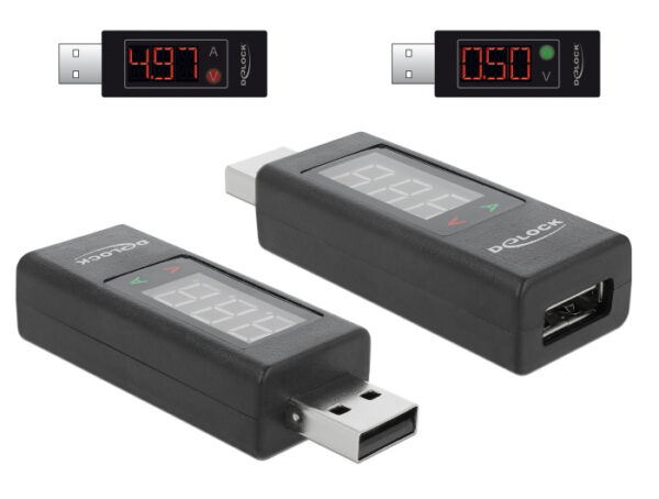 DELOCK αντάπτορας USB 65569 με οθόνη ένδειξης V/A, έως 5V/4A, μαύρος