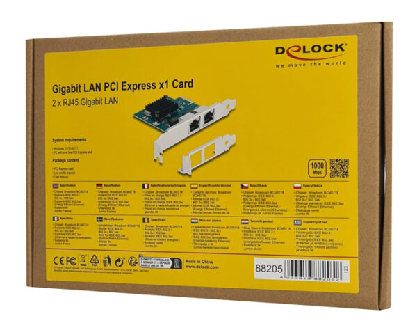DELOCK κάρτα επέκτασης PCIe x1 σε 2x RJ45 Gigabit 88205, 1000Mbps