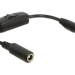 This cable by Delock can be connected to a DC power port. By using the on / off switch the power supply for the connected device can be switched on or off. Therefor it is not needed to remove the cable from the female port to switch off the power supply.