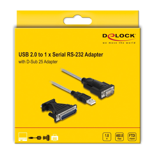 DELOCK καλώδιο USB σε RS-232 DB9 61314 με αντάπτορα DB25, 1.8m, μαύρο