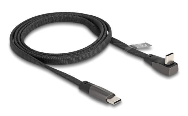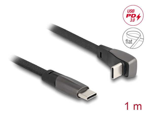 DELOCK καλώδιο USB-C 80751, 60W, flat, γωνιακό, 480 Mbps, 1m, μαύρο