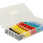 Το σετ περιλαμβάνει 100 θερμοσυστελλόμενα σε 6 διαφορετικές διαμέτρους και χρώματα. Είναι τοποθετημένα μέσα σε πλαστικό κουτί για την ταξινόμηση και προστασία των μονωτικών το οποίο μπορεί να επαναχρησιμοποιηθεί για την αποθήκευση διαφόρων αξεσουάρ.