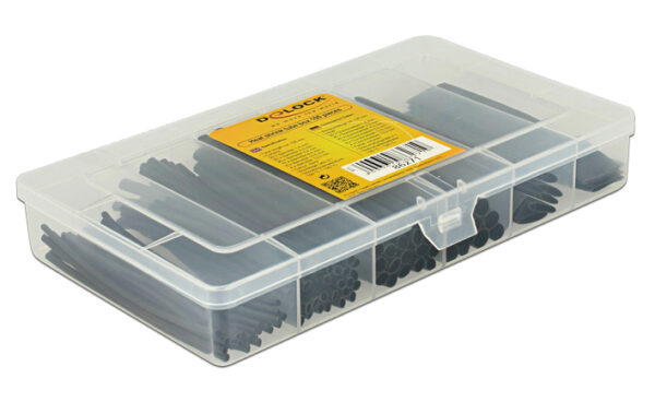 Το σετ περιλαμβάνει 100 θερμοσυστελλόμενα μαύρου χρώματος σε 6 διαφορετικές διαμέτρους. Είναι τοποθετημένα μέσα σε πλαστικό κουτί για την ταξινόμηση και προστασία των μονωτικών το οποίο μπορεί να επαναχρησιμοποιηθεί για την αποθήκευση διαφόρων αξεσουάρ.