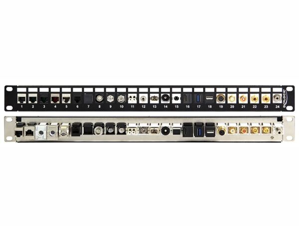 This Patch Panel by Delock can be mounted in a 19" rack. With its standardized dimensions, it is suitable for easy snap-in mounting of 24 Keystone modules.