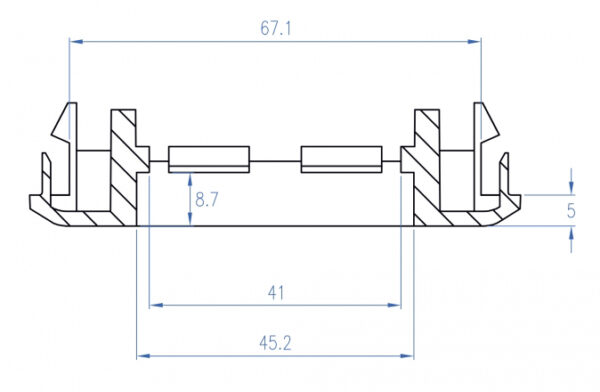 Μπορεί να χρησιμοποιηθεί με δύο module πρίζας 45x45mm της σειράς Easy 45 ή με τέσσερα 22.5x45mm.