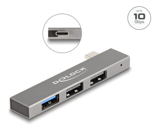 Αυτό το hub της Delock μπορεί να συνδεθεί με το laptop ή το desktop σας μέσω θύρας USB-C και να επεκτείνει τις θύρες του με 3x USB θύρες. Διαφορετικές συσκευές USB, όπως docking stations, card readers κ.λπ. μπορούν να συνδεθούν μέσω του hub.