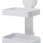 Βάση μπάνιου της Ecoco με 2 θέσεις για σαπούνι, σε λευκό χρώμα. Τοποθετείται εύκολα στον τοίχο με αυτοκόλλητο το οποίο αποσπάται από την βάση, διευκολύνοντας τον καθαρισμό της.
