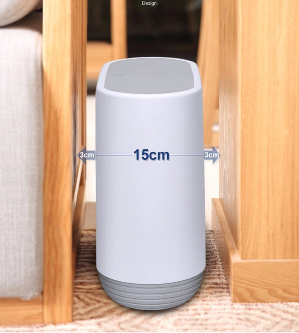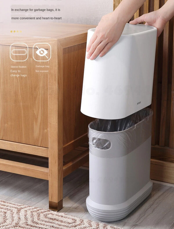 Πλαστικός κάδος απορριμμάτων με χωρητικότητα 10 λίτρα. Το καπάκι του ανοίγει προς τα έξω, ώστε να μην καταλαμβάνει χώρο από τον οφέλιμο, ασφαλίζει και ανοίγει εύκολα με το πάτημα ενός κουμπιού. Επίσης, ο μακρόστενος σχεδιασμός του κάδου προσφέρει μεγάλο άνοιγμα, διευκολύνοντας την απόρριψη μεγαλυτέρων αντικειμένων και το άδειασμα από φαράσι.