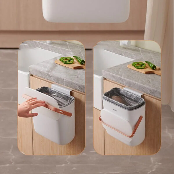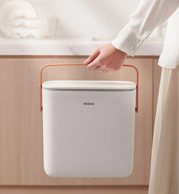 Πλαστικός κάδος απορριμμάτων για να διατηρείτε την κουζίνα σας πάντα ταχτοποιημένη από την Ecoco. Η τοποθέτηση του μπορεί να γίνει με 2 τρόπους, είτε κρεμώντας το από ντουλάπια είτε σε επίπεδη επιφάνεια με αυτοκόλλητο.