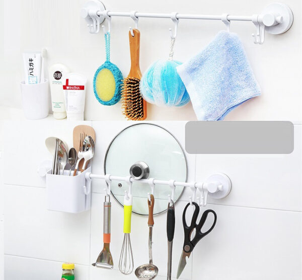 Κρεμάστρα της Ecoco, ιδανική για την κουζίνα ή το μπάνιο. Εξοπλίζεται με 8 γάντζους για την αποθήκευση μικροαντικειμένων, διαφόρων σκευών και πετσετών με ανώτατο συνολικό βάρος αντοχής 5kg. Τοποθετείται εύκολα σε οποιαδήποτε επίπεδη επιφάνεια με αυτοκόλλητα κλιπ.