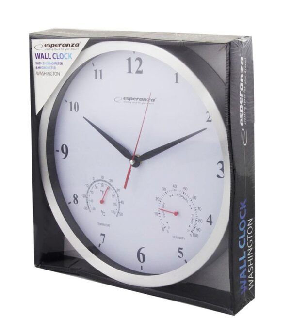 Το ρολόϊ τοίχου Esperanza Washington EHC008W δεν χρησιμεύει μόνο στο να δείχνει την ώρα, μπορεί να κάνει το σπίτι σας η το γραφείο σας και γενικά τον χωρο εργασία σας πιο ελκυστικό με το κομψό του στυλ. Εγγυάται δυνατότητα ανάγνωσης ενδείξεων ακόμα και απο το πιο μακρινό μέρος του δωματίου.