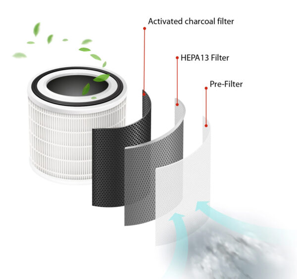 Αυτό το φίλτρο HEPA13 για καθαριστές αέρα, φιλτράρει το 99,9% των σωματιδίων μεγαλύτερα από 0,3 μm, από τον αέρα του δωματίου. Απομακρύνει τα λεπτά σωματίδια σκόνης, τα σπόρια μούχλας, τη γύρη, τα αερολύματα με βακτήρια ή ιούς και αλλεργιογόνα από τον αέρα του δωματίου.