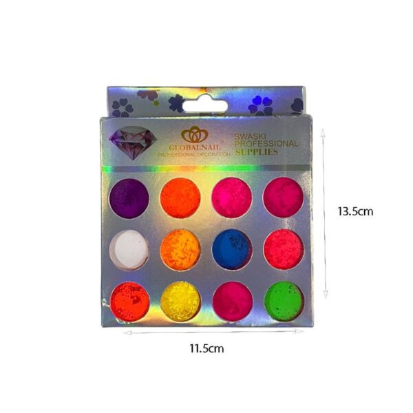 Globalnail Pigment μανικιούρ σε βαζάκια για διακόσμηση νυχιών σε 12 χρώματα – Χρώματα Pigments σε σκόνη