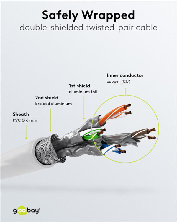 Τα καλώδια δικτύου της Goobay κατασκευάζονται από ποιοτικά υλικά, με τις υψηλότερες τεχνικές προδιαγραφές, προσφέροντας αξιόπιστη λειτουργία υψηλής απόδοσης, με αντοχή στον χρόνο.