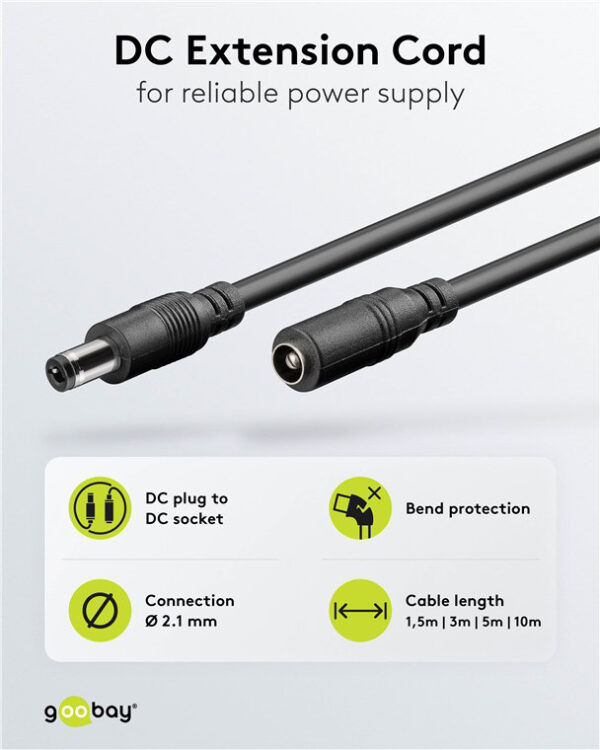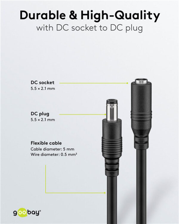 GOOBAY καλώδιο προέκτασης τροφοδοσίας 76671, 5.5×2.1mm, 5m, μαύρο