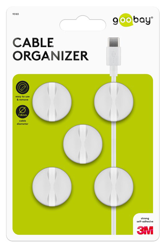 Οργανωτές καλωδίων σιλικόνης με θέση για 1 καλώδιο με μέγιστη διάμετρο 7.8mm. Η επικόλληση τους μπορεί να γίνει σε ξύλινη, πέτρινη, γυάλινη, πλαστική και μεταλλική επιφάνεια με αυτοκόλλητο 3M, το οποίο δεν αφήνει υπολείμματα όταν αφαιρεθεί. Είναι κατάλληλοι για την εύκολη τακτοποίηση καλωδίων όπως USB ή τροφοδοσίας.