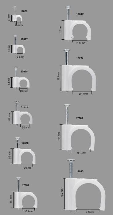 Ρόκα ιδανικά για την στήριξη καλωδίων σε τοίχους, κουφώματα θυρών και γωνίες. Είναι κατασκευασμένα από υψηλής ποιότητας πλαστικό με γαλβανισμένα ατσάλινα καρφιά. Μπορούν να χρησιμοποιηθούν τόσο σε εσωτερικούς όσο και εξωτερικούς χώρους.