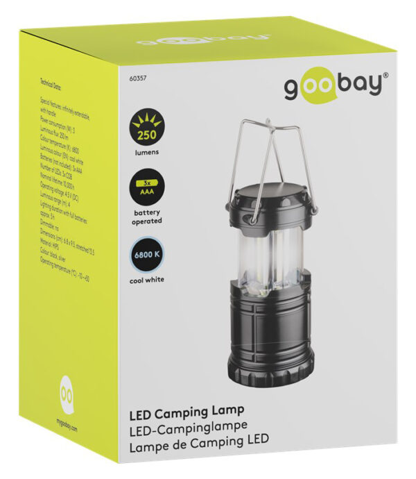 LED φανάρι Goobay, με πτυσσόμενο σώμα, ιδανικό για το σπίτι, για κάμπινγκ και άλλες υπαίθριες δραστηριότητες.