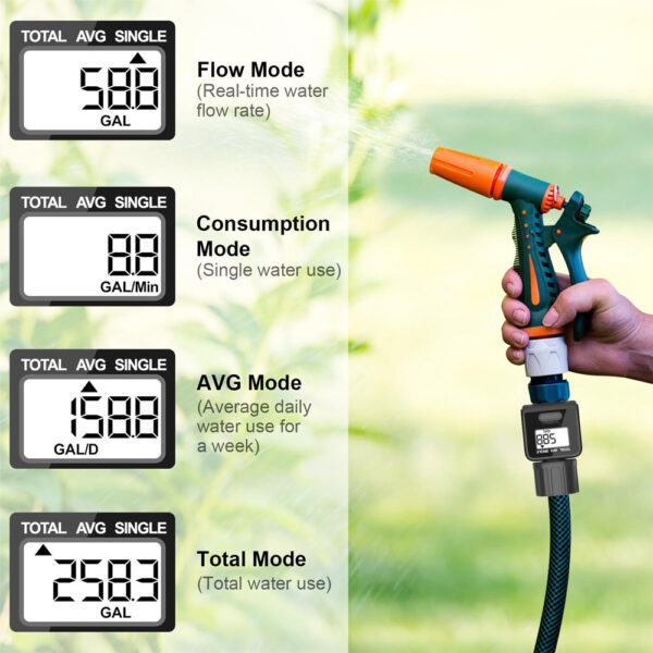 Μπορεί να μετρήσει την κατανάλωση του νερού σε πραγματικό χρόνο, σε μια χρήση, ανά ημέρα, και την συνολική κατανάλωση.