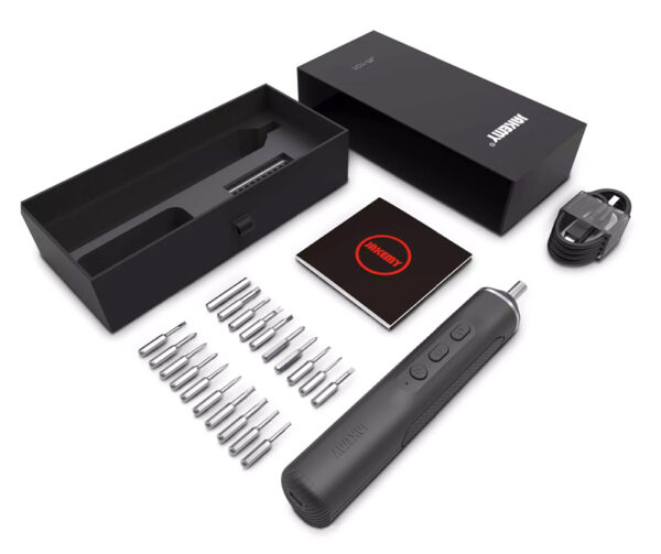 Στη συσκευασία συμπεριλαμβάνονται 20 μύτες κατσαβιδιού και καλώδιο φόρτισης.