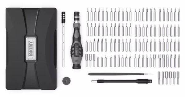 Σετ κατσαβιδιών της Jakemy το οποίο αποτελείται από κατσαβίδι, προέκταση, μαγνητιστή, τσιμπίδα και 30 διαφορετικές μύτες κατσαβιδιού.