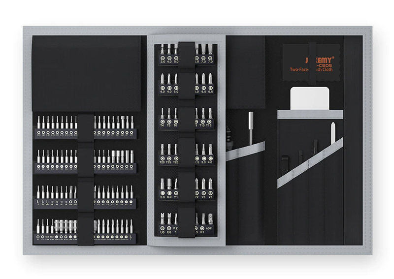 Σετ κατσαβιδιών της Jakemy το οποίο αποτελείται από κατσαβίδι, προέκταση, μαγνητικό φύλλο και 30 διαφορετικές μύτες κατσαβιδιού.