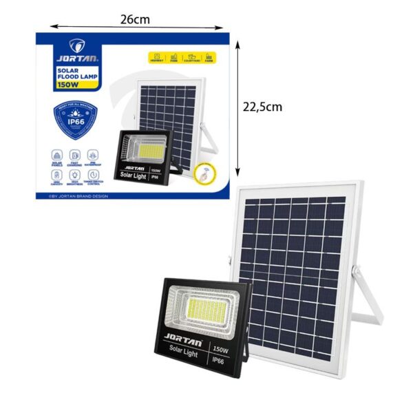 Jortan Ηλιακός Προβολέας Με Τηλεχειριστήριο LED 150W IP66- Solar Flood Lamp