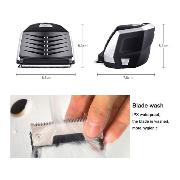 Κουρευτική μηχανή της εταιρίας Kemei, κατάλληλη για χρήση σε περιοχές όπως τα μαλλιά, τα γενιά και το σώμα. Λειτουργεί με μπαταρία, ενώ απαιτούνται 3 ώρες για μια πλήρη φόρτιση.