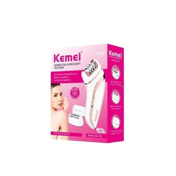 Σετ αποτρίχωσης epilator της εταιρείας Kemei, κατάλληλο για χρήση στο σώμα. Περιλαμβάνει μηχανή με ειδικές περιστρεφόμενες ηλεκτρικές τσιμπίδες μεγάλης ταχύτητας, αφαιρεί από τον θύλακα τις λεπτές ή χοντρές τρίχες κάθε μήκους, προσφέροντας μακροπρόθεσμα αποτελέσματα και απαλότητα στην επιδερμίδα. Λειτουργεί με επαναφορτιζόμενη μπαταρία.