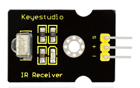 Digital IR receiver module της Keyestudio. Με αυτόν τον δέκτη IR, το Arduino είναι σε θέση να λαμβάνει εντολή από οποιοδήποτε IR τηλεχειριστήριο.