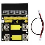 Power supply shield για Micro:bit από την Keyestudio. Αυτή η πλακέτα έχει σχεδιαστεί για να διευκολυνθεί η καλωδίωση της πλακέτας ανάπτυξης Micro:bit.