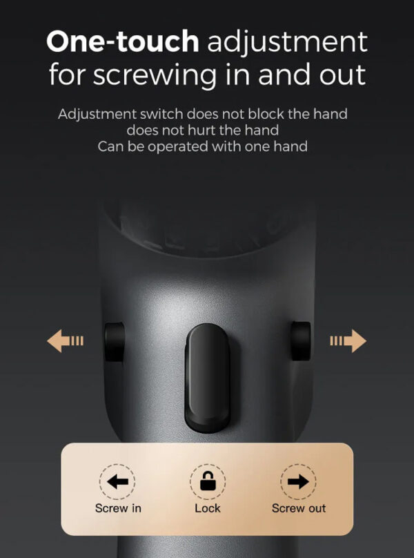Η κεφαλή μπορεί να περιστρέφεται δεξιόστροφα ή αριστερόστροφα, ενώ διαθέτει και 7 ταχύτητες ροπής, οι οποίες εναλλάσσονται εύκολα μέσω της οθόνης αφής.