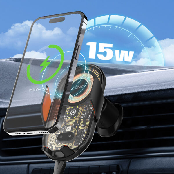 Συγκρατεί ιδιαίτερα σταθερά το smartphone ενώ παράλληλα το φορτίζει ασύρματα με απόδοση έως 15W.