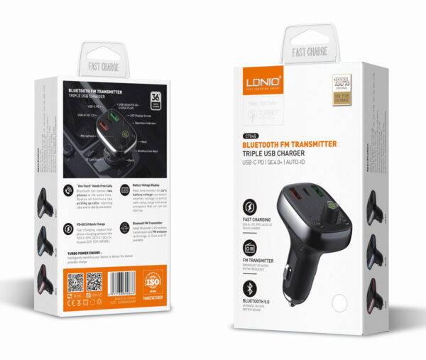 LDNIO FM Transmitter & φορτιστής C704Q, 2x USB/1x USB-C, 36W, Bluetooth, μαύρο