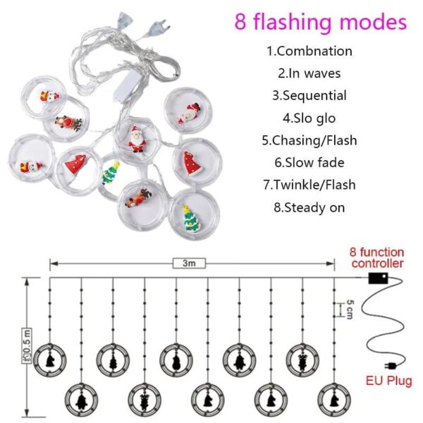 LED Χριστουγεννιάτικα φωτάκια κουρτίνα με φιγούρες ψυχρό φως 3m 10L – Christmas deco lights curtain