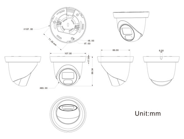 Υβριδική κάμερα 4 σε 1 (AHD, TVI, CVI, CVBS), με φακό 2.8mm, 1/2.5" CMOS αισθητήρα, ανάλυση 8M και εμβέλεια φωτός έως 25m. Διαθέτει διακόπτη για να αλλάξετε την λειτουργία εύκολα και γρήγορα σε AHD, TVI, CVI, CVBS, αλλά και μικρόφωνο για μεταφορά ήχου μέσω του ομοαξονικού καλωδίου (Audio Over Coaxial) χωρίς να απαιτείται χρήση έξτρα καλωδίου.