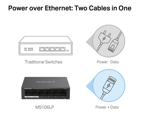 6-Port 10/100Mbps Desktop Switch with 4-Port PoE+ (MS106LP)
