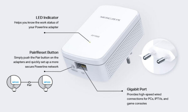MERCUSYS Powerline MP500 Kit, AV1000 Gigabit, Ver: 1.0