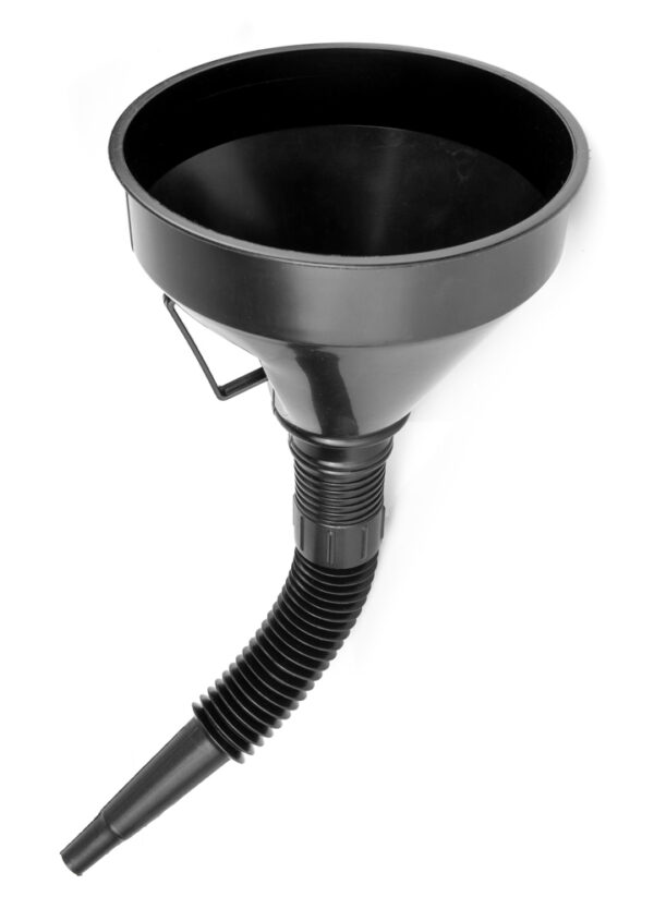 Χωνί με βιδωτό σπιράλ από την Moje Auto, κατάλληλο για χρήση με υγρά καύσιμα και λάδια οχημάτων. Στο εσωτερικό του ενσωματώνει μεταλλικό φίλτρο για την ασφαλή ροή των υγρών.