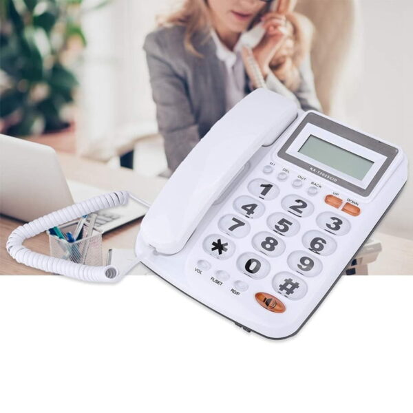 Ενσύρματο τηλέφωνο κατάλληλο για χρήση γραφείου ως μια πιο πρακτική λύση από κάποιο ασύρματο που χρειάζεται τακτική φόρτιση. Είναι ιδανικό για ηλικιωμένους καθώς έχει μεγάλα πλήκτρα. Έχει λειτουργία ανοιχτής ακρόασης για να μπορείτε να μιλάτε άνετα στο τηλέφωνο χωρίς να το κρατάτε, όπως επίσης και αναγνώριση κλήσεων για να βλέπετε στην οθόνη τον αριθμό όποιου σας καλεί.