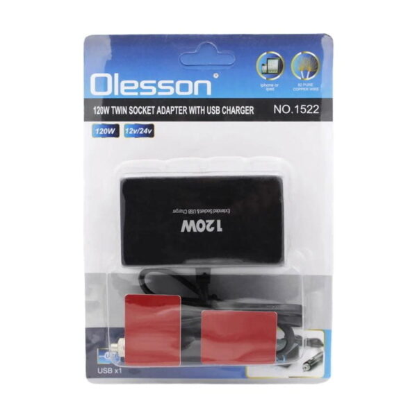 OLESSON Πολύπριζο αναπτήρα αυτοκινήτου 12V/24V 120W με 2 x παροχές/1 x USB και μπλε LED φωτισμό – Socket charger NO.1522