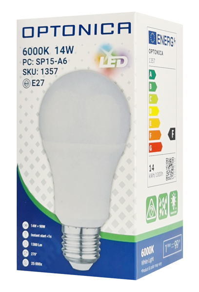 OPTONICA LED λάμπα A60 1357, 14W, 6000K, E27, 1380lm