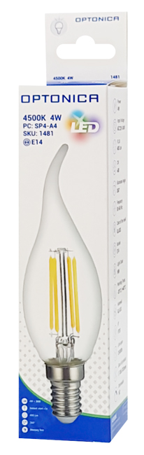 OPTONICA LED λάμπα Candle C35T Filament 1481, 4W, 4500K, E14, 400lm