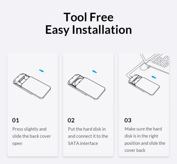 Η θήκη της ORICO επιτρέπει την σύνδεση ενός 2.5" SATA HDD ή SSD με έναν επιτραπέζιο ή φορητό υπολογιστή μέσω θύρας USB.