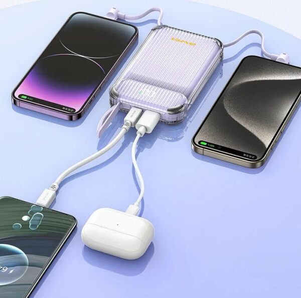 Διαθέτει ενσωματωμένα 2 καλώδια φόρτισης Type C & Lightning για να μην χρειάζεται να μεταφέρεται ξεχωριστά το καλώδιό σας.