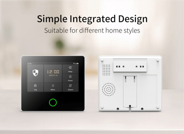 Διαθέτει βολική οθόνη αφής και back up επαναφορτιζόμενη μπαταρία χωρητικότητας 1500mAh. Υποστηρίζει σύνδεση Wi-Fi αλλά και δίκτυο 2G για τηλεφωνικές κλήσεις και αποστολή μηνυμάτων. Επιπλέον, μέσω της εφαρμογής Tuya Smart & Smart Life σας δίνεται η δυνατότητα να ελέγξετε το σύστημα συναγερμού, απομακρυσμένα από την smartphone συσκευή σας. Εξοπλίζεται με σειρήνα για ηχητικό συναγερμό απευθείας από το κεντρικό πάνελ, ενώ, χάρη στο ενσωματωμένο μικρόφωνο, επιτρέπει την αμφίδρομη μεταφορά φωνής και ήχου. Η τοποθέτηση του μπορεί να γίνει είτε επιτοίχια με βίδες είτε επιτραπέζια με ενσωματωμένο kickstand.