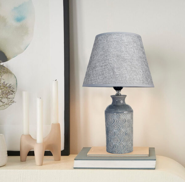 POWERTECH επιτραπέζιο φωτιστικό HLL-0142, E27, κεραμική βάση, γκρι