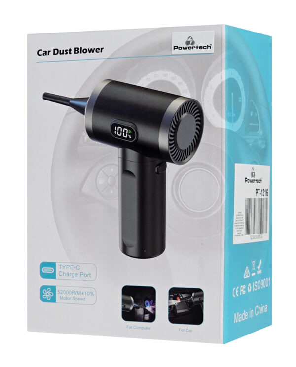 Ηλεκτρικό air duster της POWERTECH, κατάλληλο για την απομάκρυνση της σκόνης από αξεσουάρ και οικιακά αντικείμενα όπως πληκτρολόγια, PC cases, κλιματιστικά, ηλεκτρονικές συσκευές κ.α.